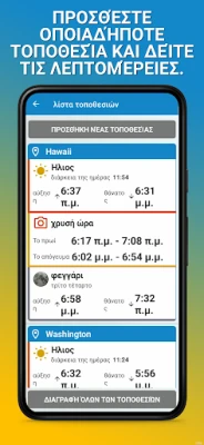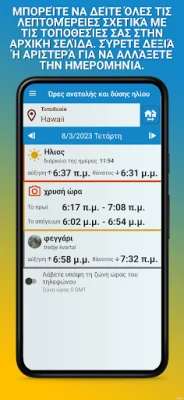 Για να διασφαλίσετε ότι δεν θα χάσετε καμία από αυτές τις ξεχωριστές στιγμές, η εφαρμογή προσφέρει τη δυνατότητα καθημερινών ειδοποιήσεων. Μπορείτε να ρυθμίσετε ειδοποιήσεις για την ώρα της ανατολής ή της δύσης του ήλιου, καθώς και για την έναρξη της "Χρυσής Ώρας", ώστε να είστε πάντα προετοιμασμένοι. Αυτή η λειτουργία σας επιτρέπει να προγραμματίζετε τις δραστηριότητές σας με απόλυτη ακρίβεια, είτε πρόκειται για πρωινό τρέξιμο, ένα δείπνο με θέα στο ηλιοβασίλεμα, ή μια εστίαση στην αστρονομία. Με την "δωρεάν εφαρμογή ανατολή και δύση του ηλίου", έχετε έναν προσωπικό βοηθό για το φως και τον ουρανό, διασφαλίζοντας ότι κάθε μέρα και νύχτα προσφέρει το μέγιστο της ομορφιάς και της έμπνευσής της.