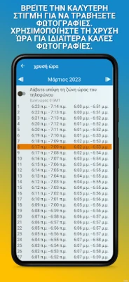 Δείτε ώρες ανατολής/δύσης ηλίου και σελήνης για κάθε τοποθεσία. Μάθετε τη διάρκεια της ημέρας και εκμεταλλευτείτε τη χρυσή ώρα για εντυπωσιακές φωτογραφίες. Λάβετε ειδοποιήσεις για μοναδικές στιγμές φωτισμού. Απαραίτητο εργαλείο για φωτογράφους και λάτρεις του ουρανού.