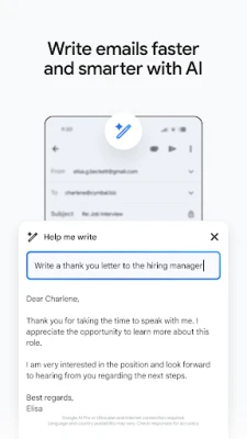 Ως αναπόσπαστο μέρος του Google Workspace, το Gmail μεταμορφώνεται σε ένα δυναμικό περιβάλλον συνεργασίας. Συνδεθείτε άμεσα με συναδέλφους μέσω του Google Chat, διοργανώστε συσκέψεις υψηλής ποιότητας με το Google Meet και συνεργαστείτε σε έργα στους Χώρους, δημιουργώντας μια συνεκτική ροή εργασίας. Απαντήστε σε προσκλήσεις του Ημερολογίου Google απευθείας από την εφαρμογή και αξιοποιήστε τις έξυπνες προτάσεις, όπως η Έξυπνη Σύνταξη και οι υπενθυμίσεις, για μέγιστη αποδοτικότητα. Επιπλέον, με την ένδειξη και το πλακίδιο για το Wear OS, έχετε γρήγορη πρόσβαση στα μηνύματά σας, όπου κι αν βρίσκεστε, διευρύνοντας τις δυνατότητες επικοινωνίας και παραγωγικότητας.