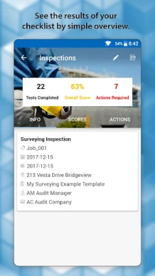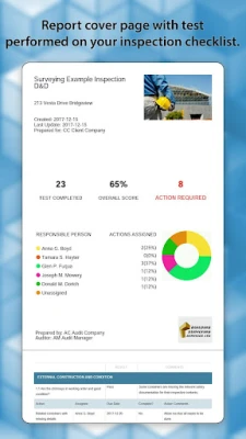 Κάθε επιθεώρηση με τη Λίστα ελέγχου OnSite είναι μια ολοκληρωμένη καταγραφή πληροφοριών. Καταχωρίστε εύκολα τίτλους, αναφορές, διευθύνσεις, στοιχεία υπευθύνων και πελατών, προσθέτοντας απεριόριστους συνεργάτες και φωτογραφίες τοποθεσίας με χάρτες. Τα επιμέρους στοιχεία ελέγχου εμπλουτίζονται με βαθμολογίες (Επιτυχία/Αποτυχία/Μη Εφαρμόσιμο), σχόλια, πολλαπλές φωτογραφίες με λεπτομερείς σημειώσεις και αναθέσιμες ενέργειες με προθεσμίες. Μετατρέψτε τα δεδομένα σας σε επαγγελματικές αναφορές PDF, προσαρμοσμένες με το λογότυπο της εταιρείας σας, ημερομηνίες λήψης φωτογραφιών, γραφήματα και στατιστικά στοιχεία. Μοιραστείτε αυτές τις αναφορές μέσω email ή cloud υπηρεσιών, έχοντας τον πλήρη έλεγχο της ποιότητας των εικόνων και της δομής τους.
