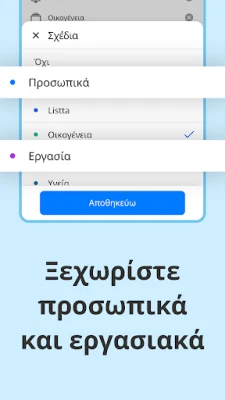 Με το Listta, ο έλεγχος βρίσκεται στα χέρια σας. Προγραμματίστε τις εργασίες σας με ευκολία, επιλέγοντας ανάμεσα σε φωτεινή ή σκοτεινή λειτουργία για μια εξατομικευμένη εμπειρία. Ορίστε υπενθυμίσεις με τις μοναδικές μελωδίες της Listta, εξασφαλίζοντας ότι κάθε σημαντικό ραντεβού ή επαναλαμβανόμενη δραστηριότητα θα σας ειδοποιήσει εγκαίρως. Το ενσωματωμένο ημερολόγιο απλοποιεί την οργάνωση του καθημερινού σας προγράμματος, ενώ η αρχειοθέτηση ιδεών, λιστών ελέγχου και σκέψεων γίνεται παιχνιδάκι χάρη στους φακέλους με δενδροειδή δομή. Διαχειριστείτε έργα ολιστικά, δουλεύοντας απευθείας με εργασίες, συμβάντα και σημειώσεις, και χρησιμοποιήστε φίλτρα και προτεραιότητες για απόλυτη προσαρμογή.