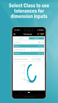 Η εφαρμογή Trelleborg Sealing Solutions O-Ring υπολογίζει διαστάσεις O-Ring εισάγοντας προδιαγραφές εγκατάστασης σε μετρικές ή ίντσες. Προτείνει μεγέθη O-Ring σύμφωνα με το ISO 3601, βοηθώντας σας να βρείτε το ακριβές εξάρτημα που χρειάζεστε για την εφαρμογή σας.