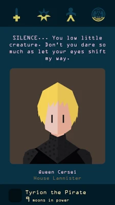 Βυθιστείτε στην καρδιά της εξουσίας, εκεί όπου κάθε απόφαση διαμορφώνει το πεπρωμένο. Αναλάβετε τους ρόλους θρυλικών μορφών, όπως η Σέρσεϊ Λάνιστερ, ο Τζον Σνόου, η Ντενέρις Ταργκάριαν, ο Τύριον Λάνιστερ, η Σάνσα Σταρκ και πολλοί άλλοι. Κάθε φορά που ξεκλειδώνετε έναν νέο μονάρχη, ξεκινάτε μια ξεχωριστή διαδρομή γεμάτη μοναδικές προκλήσεις και ανείπωτα μυστήρια που περιμένουν να τα αποκαλύψετε. Με μια απλή κίνηση του δακτύλου, αριστερά ή δεξιά, θα κληθείτε να απαντήσετε στις φλογερές εκκλήσεις και τις απρόβλεπτες απαιτήσεις των ανθρώπων του Γουέστερος. Κάθε επιλογή σας έχει βάρος, επηρεάζοντας βαθιά το μέλλον των Επτά Βασιλείων, ενώ η απόρριψη κάποιων αιτημάτων μπορεί να απαλλάξει την Αυτοκρατορική σας Μεγαλειότητα από βάρη – αλλά με τίμημα.