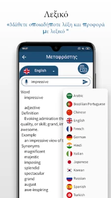 Εμπλουτίστε τις γνώσεις σας με την ενσωματωμένη λειτουργία "Voice Dictionary" του Notepad Free App. Ανακαλύψτε τις σημασίες λέξεων σε όλες τις παγκόσμιες γλώσσες μέσω ενός εκτενούς διαδικτυακού λεξικού. Από λεπτομερείς πληροφορίες για την ισπανική κουλτούρα μέχρι τις ιδιαιτερότητες της αγγλικής γλώσσας, και από τα γαλλικά έως τα χίντι ή τα παντζάμπι, το λεξικό προσφέρει μια πλούσια πηγή γνώσης. Μιλήστε για να πληκτρολογήσετε λέξεις σε διάφορους συνδυασμούς, όπως Ισπανικά σε Πορτογαλικά ή Ιταλικά σε Ουρντού, και αποκτήστε άμεση πρόσβαση στις λεπτομέρειές τους. Η δυνατότητα κλειδώματος δεδομένων στις σημειώσεις σας προσφέρει επίσης επιπλέον ασφάλεια, ενώ η λειτουργία Audio Translator σας επιτρέπει να μαθαίνετε νέες γλώσσες μέσω φωνητικής μετάφρασης και να δημιουργείτε σημειώσεις με ακουστική μετατροπή ομιλίας.