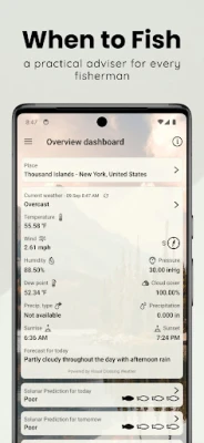 Το "When to Fish" είναι ο προσωπικός σας σύμβουλος ψαρέματος. Βρείτε τις καλύτερες ώρες και τοποθεσίες για ψάρεμα γλυκού νερού. Η εφαρμογή παρέχει προβλέψεις και συνθήκες, χρησιμοποιώντας καιρικά και σεληνιακά δεδομένα για να μεγιστοποιήσετε την επιτυχία σας.