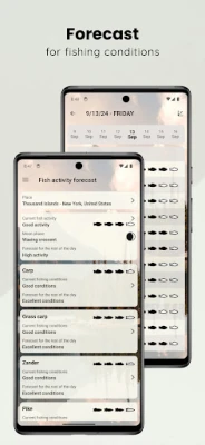 Αναβαθμίστε την εμπειρία ψαρέματος και αυξήστε τις πιθανότητες επιτυχίας σας με αυτό το πρωτοποριακό εργαλείο, ειδικά σχεδιασμένο για κάθε λάτρη του ψαρέματος. Η εφαρμογή παρέχει εξατομικευμένες προβλέψεις για τις καλύτερες συνθήκες ψαρέματος για πάνω από είκοσι είδη γλυκού νερού, συμπεριλαμβανομένων του κυπρίνου, της τούρνας, του ζάντερ, της πέρκας, της πέστροφας, του γουλιανού, του λαβρακιού και πολλών άλλων. Μην αφήνετε την τύχη να καθορίζει την έξοδο σας – ενημερωθείτε για τη γενική δραστηριότητα των ψαριών και προγραμματίστε το ταξίδι σας με ακρίβεια, εκμεταλλευόμενοι προγνωστικά δεδομένα ειδικά για κάθε είδος.